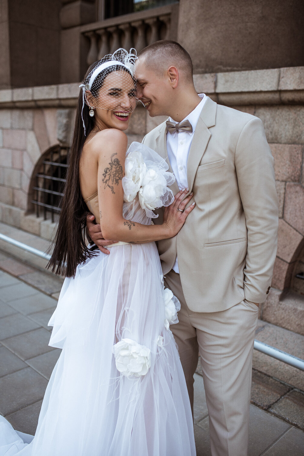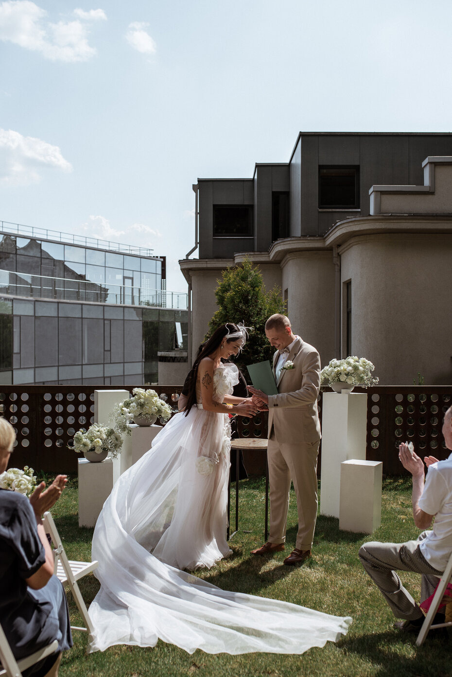 Vestuves planavo – jaunieji kartu su „Čiop Čiop“ renginių organizatore Agne Žilinskaite. Vestuvių stilius – moderni klasika. Fotografė – Sonata Švedkauskė. Nuotakos įvaizdis – Liutauras Salasevičius. Puokštė – Agnė Žilinskaitė. Jaunikio apranga – „Zara“. Jaunikio šukuosena – Liutauras Salasevičius. Sutuoktuvių žiedai – „Auksinės svajonės“ juvelyrai. Šventės ir vestuvių ceremonijos vieta – „Čiop Čiop Kaunas“. Dekoras – Agnė Žilinskaitė.