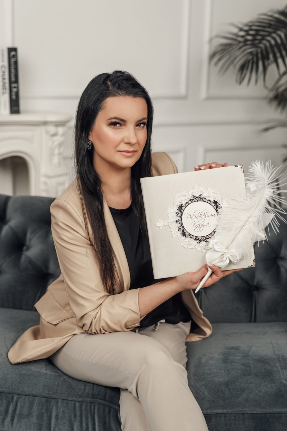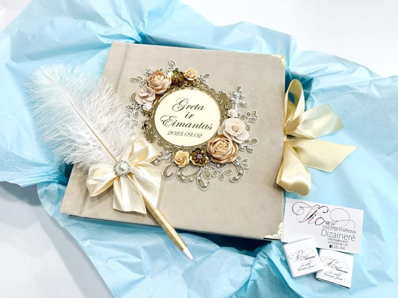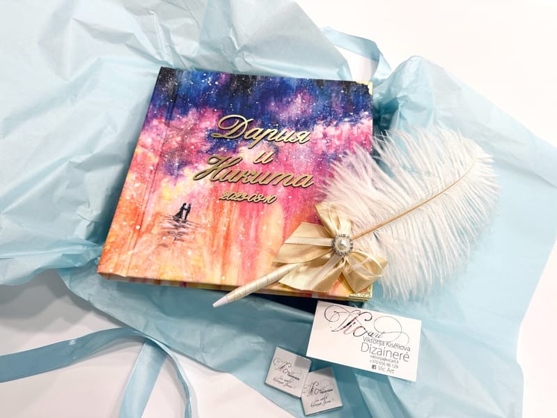 Esu profesionali dizaiderė Viktorija Kiseliova, studijos „Vic art“ įkūrėja, daugiau nei 10 metų kuriu ir gaminu rankų darbo palinkėjimų knygas, kurių išskirtinumas – unikali puošyba ir dekoras. Kiekviena knyga – individuali ir unikali, kurta su didžiuliu atsidavimu ir meile, antros tokios nerasite. Palinkėjimų knyga tapo neatsiejama Šventės detalė. Tai labai sentimentalus ir brangus atsiminimas. Po daugelio metų vartydami palinkėjimų knygą galėsite pasinerti į gražiausios savo gyvenimo dienos prisiminimus, parodyti vaikams ar net anūkams.