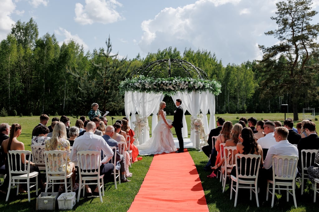 Rinkdamiesi šventės vietą sekėme vilos „Barbora“ keliamus įrašus bei istorijas ir jau tada supratome, kad vienas iš šios vietos privalumų – puošnus lauko kupolas, taigi norėjome išnaudoti šią gražią vietą. Pasirinkdami humanistinę ceremoniją, nelabai žinojome ko tikėtis, kadangi nėra tekę tokioje dalyvauti. Tačiau dabar visiems rekomenduočiau rinktis šią paslaugą. Ceremoniją vedė „Taip“ kitaip“ komanda (nuostabi ceremonmeisterė Rasa), o ceremonijos koordinavimą patikėjome vilos „Barbora“ savininkei Akvilei.