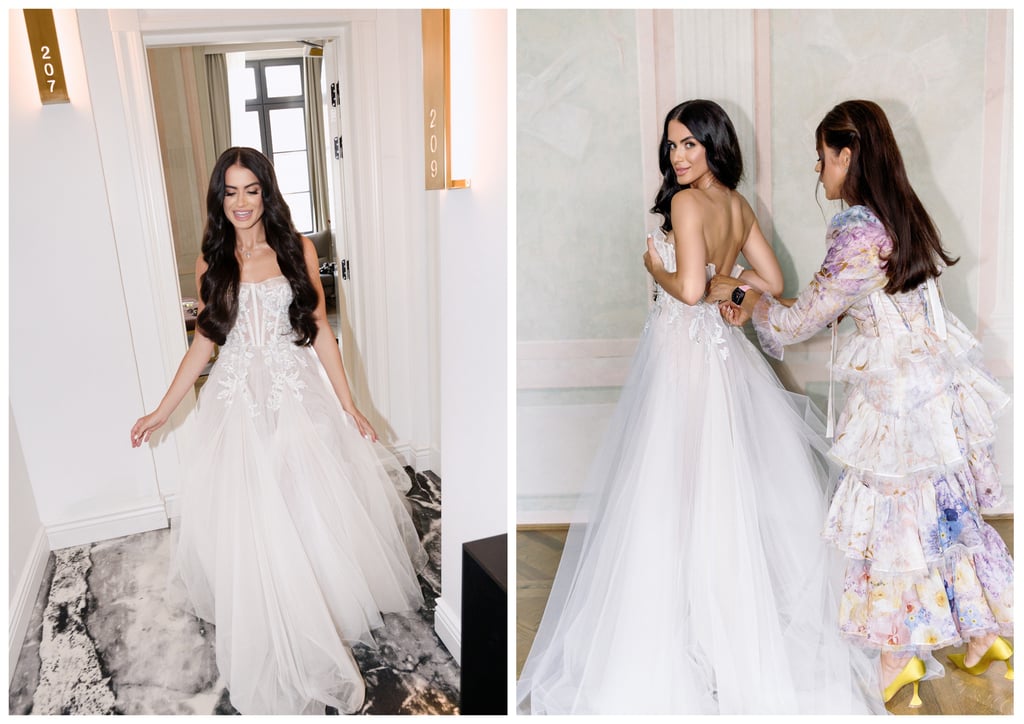 Turiu pasakyti, kad suknelės paieškos procesas Amerikoje yra ypatingas (jei esate matę „Say Yes To The Dress“ – tai procesas buvo būtent toks). Jos ieškojau kartu su savo mama Aušra, nes man buvo labai svarbu, kad ir ji dalyvautų šiame man svarbiame momente. Kartu apsilankėme keliuose vestuvinių suknelių salonuose Beverli Hilso ir West Holivudo rajonuose, tačiau nuo pat pradžių žinojome, kad yra tik dvi kūrėjos, pas kurias galėčiau rasti savo svajonių suknelę, – tai Izraelio dizainerės Berta ir Galia Lahav. Daug metų svajojau apie jų dizainus ir žinojau, kad būtent jų stilius gali įgyvendinti mano vestuvių įvaizdžio viziją. Norėjau atrodyti lengvai, fėjiškai ir jaunatviškai. Tiesa, nors ir viename salone susižavėjome netikėtai pamatyta karališko dizaino suknele, privertusia mane ir mamą net susigraudinti, širdimi jaučiau, kad mano vyrui būtų gražiausia būtent išsirinkta fėjiška Bertos suknelė.
