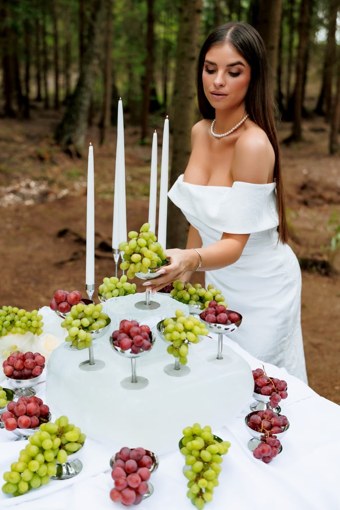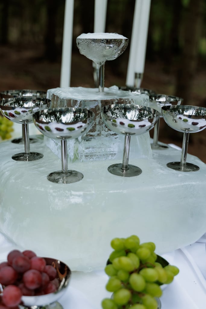„Neslėpsiu, kad svarbiausiu dekoro akcentu įsivaizdavau ledo luitus, o ypač svajojau apie ledinę šampano piramidę,“ – prisipažįsta planuotoja Agnieška. „Nors šios ledinės šampano piramidės gamyba pareikalavo nemažai pastangų – man talkino ir vyras, ir tėtis – bendromis jėgomis sukūrėme piramidę, kuri atrodė išties įspūdingai.“