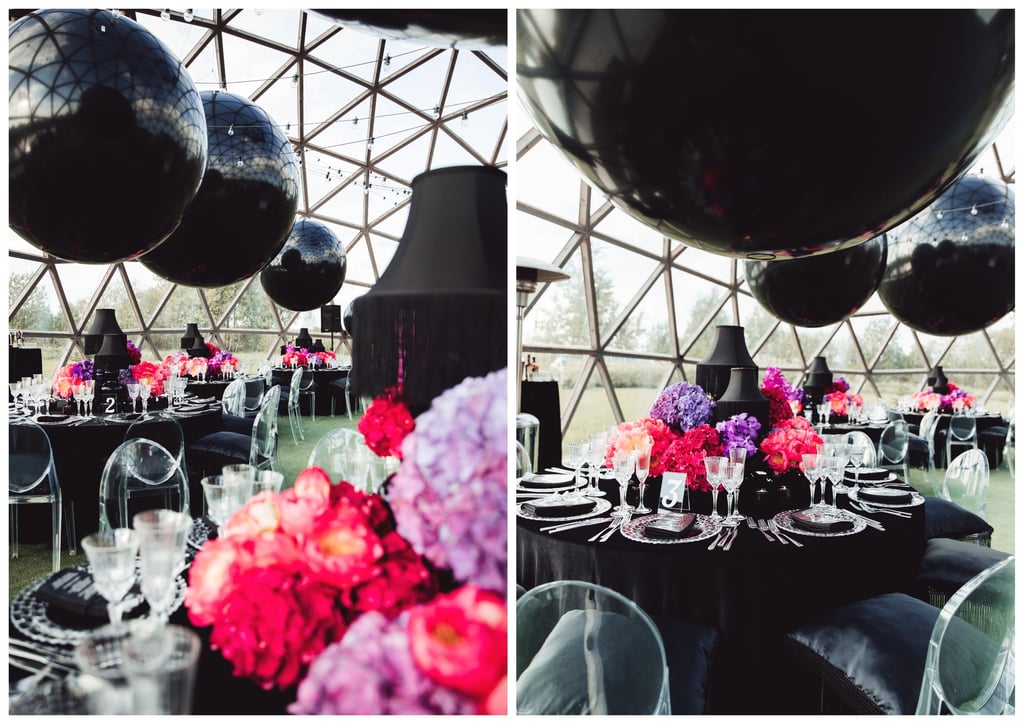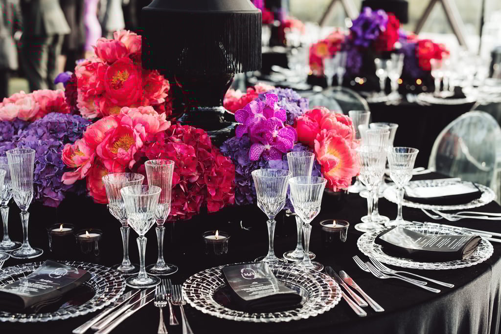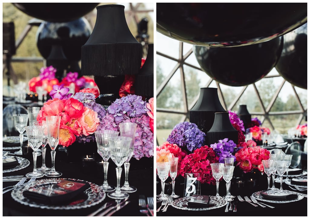 Didelis dėmesys buvo skirtas dekorui, ryškioms detalėms. Šventei išskirtinumo suteikė aksominė juoda spalva ir ryškiai efektingos gėlės.