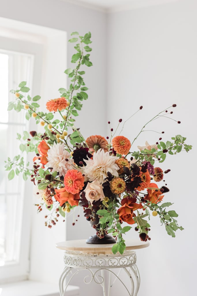 Tebūnie tai viena nedidelė kompozicija ant jūsų stalo, tačiau galbūt spalviškai deranti prie pirmojo patiekalo, galbūt koreliuojanti su šventės vietos interjeru, galbūt atspindinti jūsų vestuvių sezoną.
