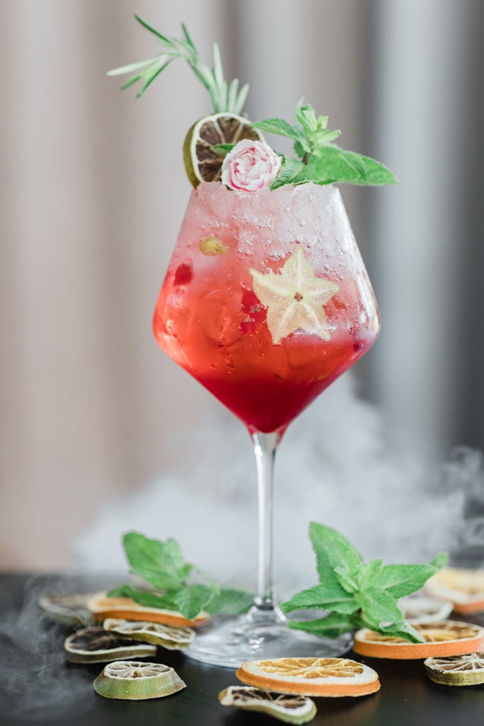 Švieži, kokybiški vaisiai, uogos, žalumynai derinami prie gėrimo tekstūros ir spalvos, tad kiekvienas kokteilis – tarsi meno kūrinys. Baigiamasis oho akcentas – sausas ledas, sukuriantis garuojančio kokteilio efektą.CWB barmenainaudoja sertifikuotą ir sąlyčiui su maistu bei gėrimu skirtą sausą ledą.